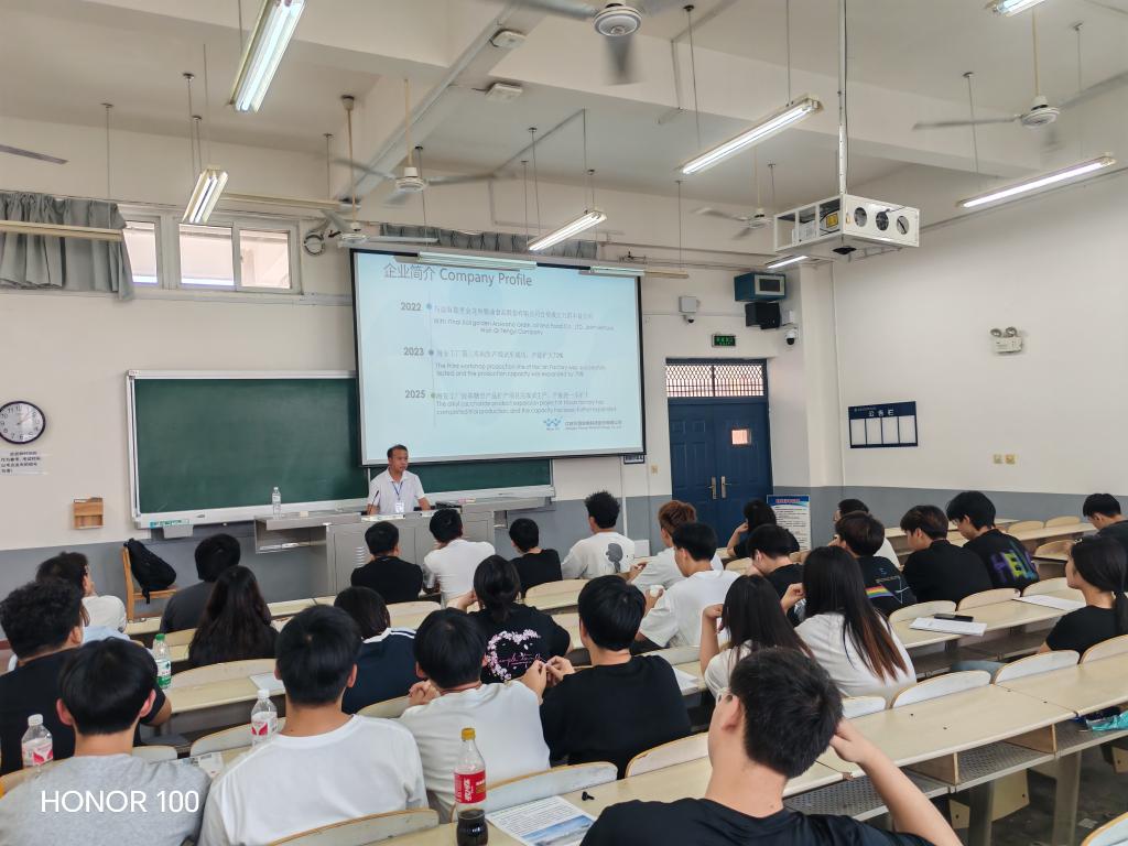江苏万淇生物科技股份有限公司成立于2009年,是一家专业生产、研发绿色环保型表面活性剂的高科技企业,已获评高新技术企业、省工程技术中心、工信部第四批“绿色工厂”、江苏民营科技企业、江苏省“专精特新”小巨人企业等称号。报告会上,贺辉经理详细解读了随着工业 4.0 推进,以天然可再生资源原料逐步替代不可再生原料是趋势,该产业正在从传统日化向各高科技和工业领域迅速渗透。贺经理结合企业用人需具备的要求提出:员工应有化学相关专业知识,如表面化学、界面化学、有机化学等基础知识;能深入了解表面活性剂的结构、性能和应用,熟悉各类表面活性剂(如阴离子、非离子等)特点;能了解表面活性剂合成、产品工艺路线等知识;具备良好实验操作技能和分析能力,能设计和开展实验;因行业向智能化数字化转型,具备一定数据分析能力和对新技术的学习应用能力有益;有团队合作、沟通能力以及解决问题的能力,同时也为同学们带来生物技术领域的前沿岗位信息。