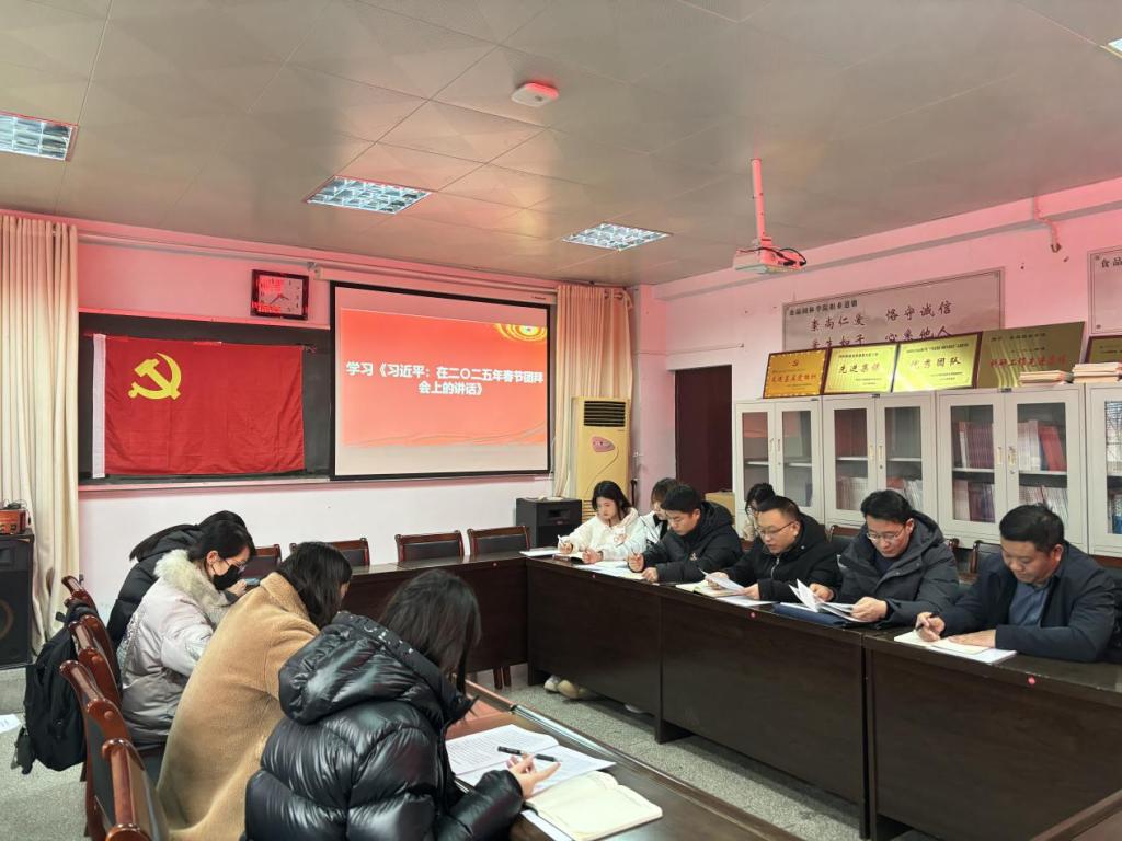 会议第一项:坚持第一议题:由党员刘欢龙同志带领全体党员学习《习近平:在二〇二五年春节团拜会上的讲话》。