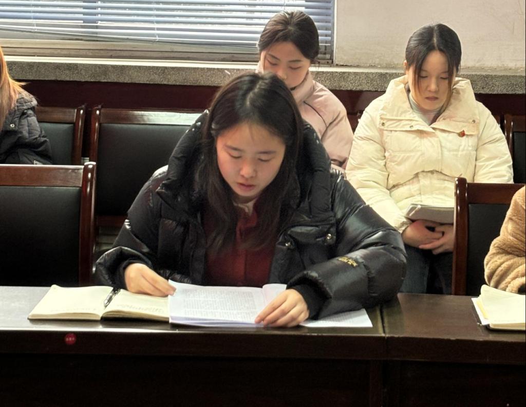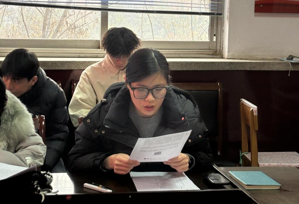 会议第三项:由党员焦晓菲同志带领全体党员学习《教育强国建设规划纲要(2024-2035)》。