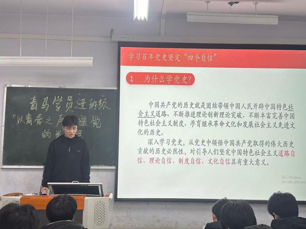活动中,青马学员们带领同学们学习回顾了党的光辉历程及各种红色精神故事,用青春的声音传递着党的理论光辉,让党的创新理论在同学们心中生根发芽、开花结果。