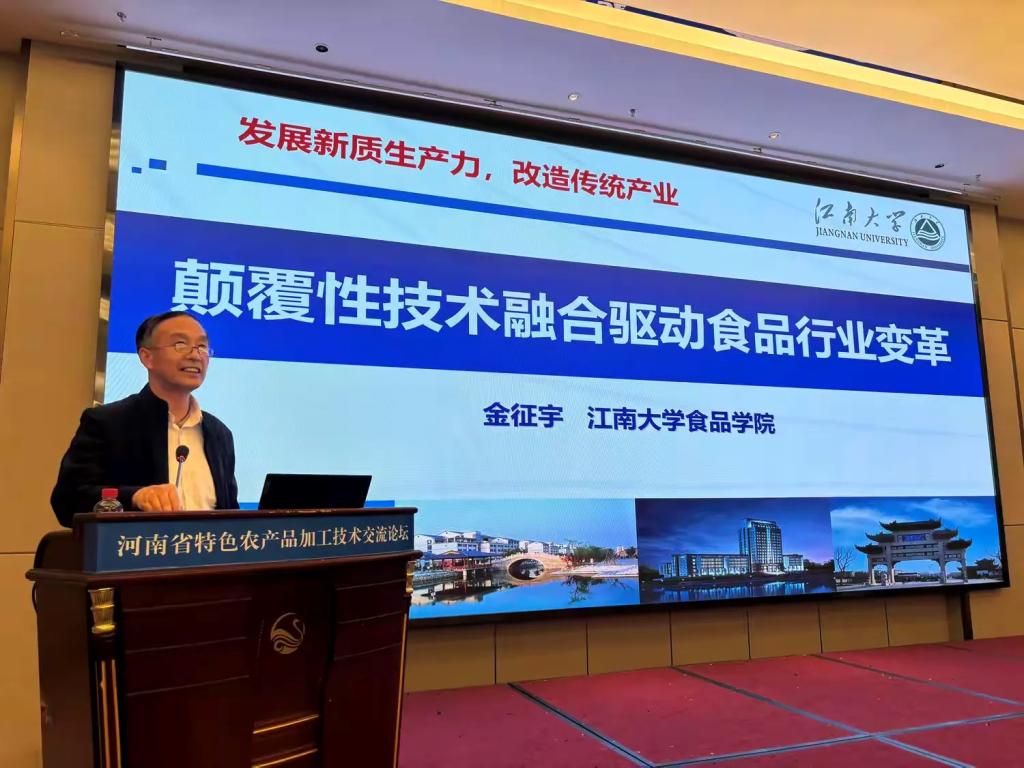 本次论坛邀请了中国工程院院士、江南大学教授金征宇做特邀报告。金院士以《颠覆性技术融合驱动食品行业变革》为题,从颠覆性技术的内涵与发展新质生产力、近期公布的颠覆性技术及其在食品行业应用情况、颠覆性技术融合驱动食品行业发展的思考三个方面全方位探讨了新质生产力以及颠覆性技术如何在粮食行业中实现应用,并指出保障我国粮食安全一方面需要不断通过科技创新提高产量,另一方面需要不断开辟粮食新来源,同时在食品感知方面也需要引进颠覆性技术,并关注区块链,确保食品安全。报告充满前瞻性和启发性,在现场引起热烈反响。三门峡市副市长艾合买提·艾开木、三门峡市政府副秘书长贾成伟专程到现场聆听了报告。