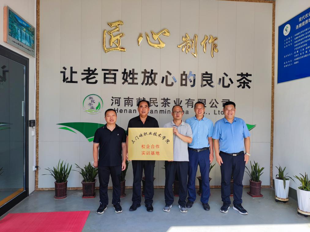 在献民茶叶有限公司,公司党总支副书记辛峰同献民茶叶经理杨献民就深化校企协同育人机制,推进实训基地建设进行深入交流。