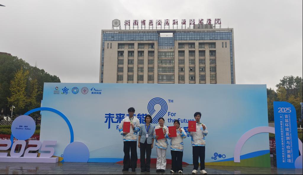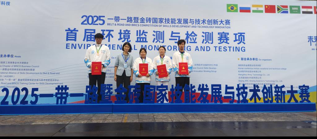 2025 年 10 月 17 日至 19 日,一带一路暨金砖国家技能发展与技术创新大赛首届“环境监测与检测赛项” 在湖南有色金属职业技术公司成功举办。公司yl23411环境工程技术专业员工丁思杞、张欣怡与袁帅、朱涵坤分别组成两支参赛队伍,与来自全国的210支高职组队伍同台竞技,最终凭借扎实的专业知识储备与稳定的临场发挥,两支队伍均荣获赛项铜奖,指导教师齐丽彬、高晓松也在赛事过程中积累经验、受益匪浅。