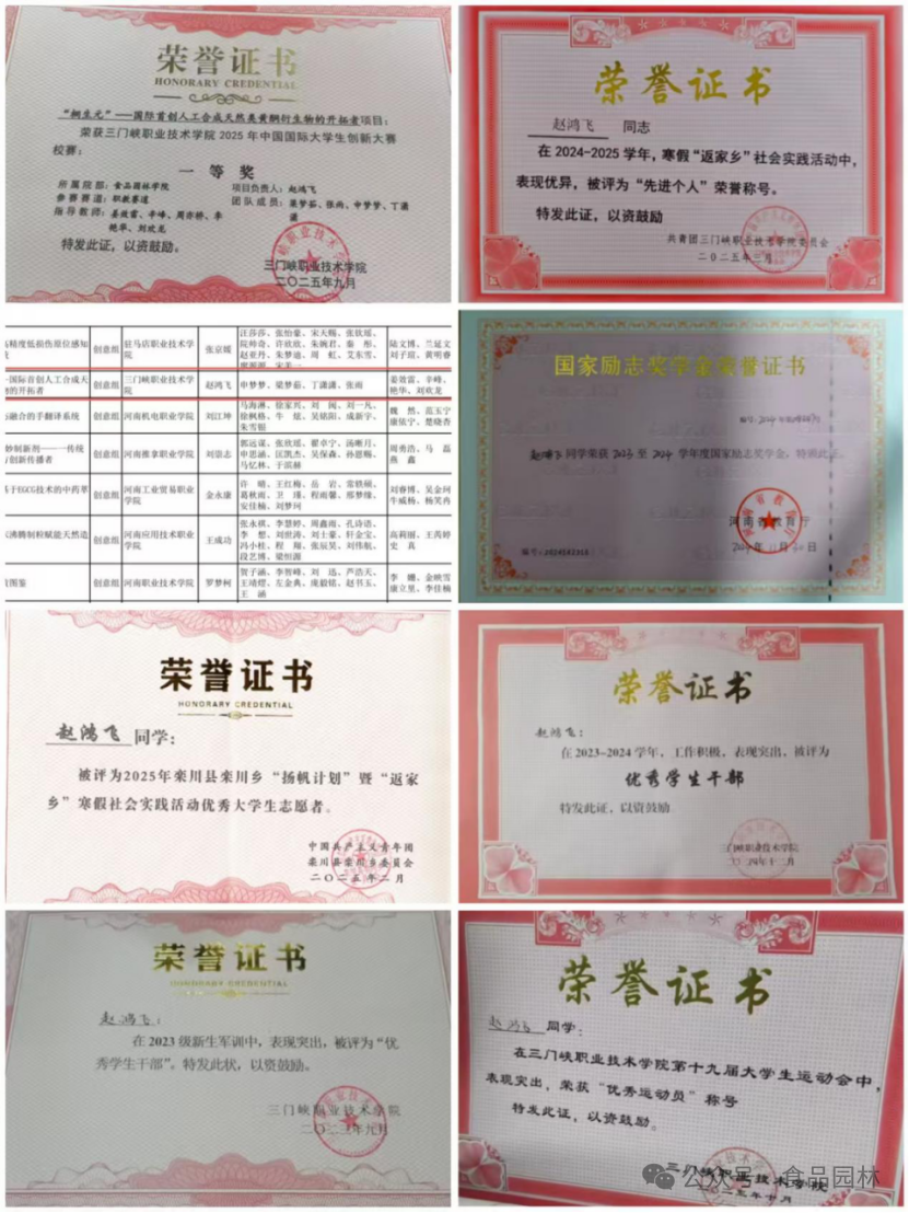 作为员工骨干,赵鸿飞始终将服务同学放在首位。他以身作则,带领班级荣获“河南省文明班级”称号;作为自管会主席,他是连接师生的坚实桥梁,连续两年获评“优秀员工干部”,充分展现了学子标杆的引领风范。