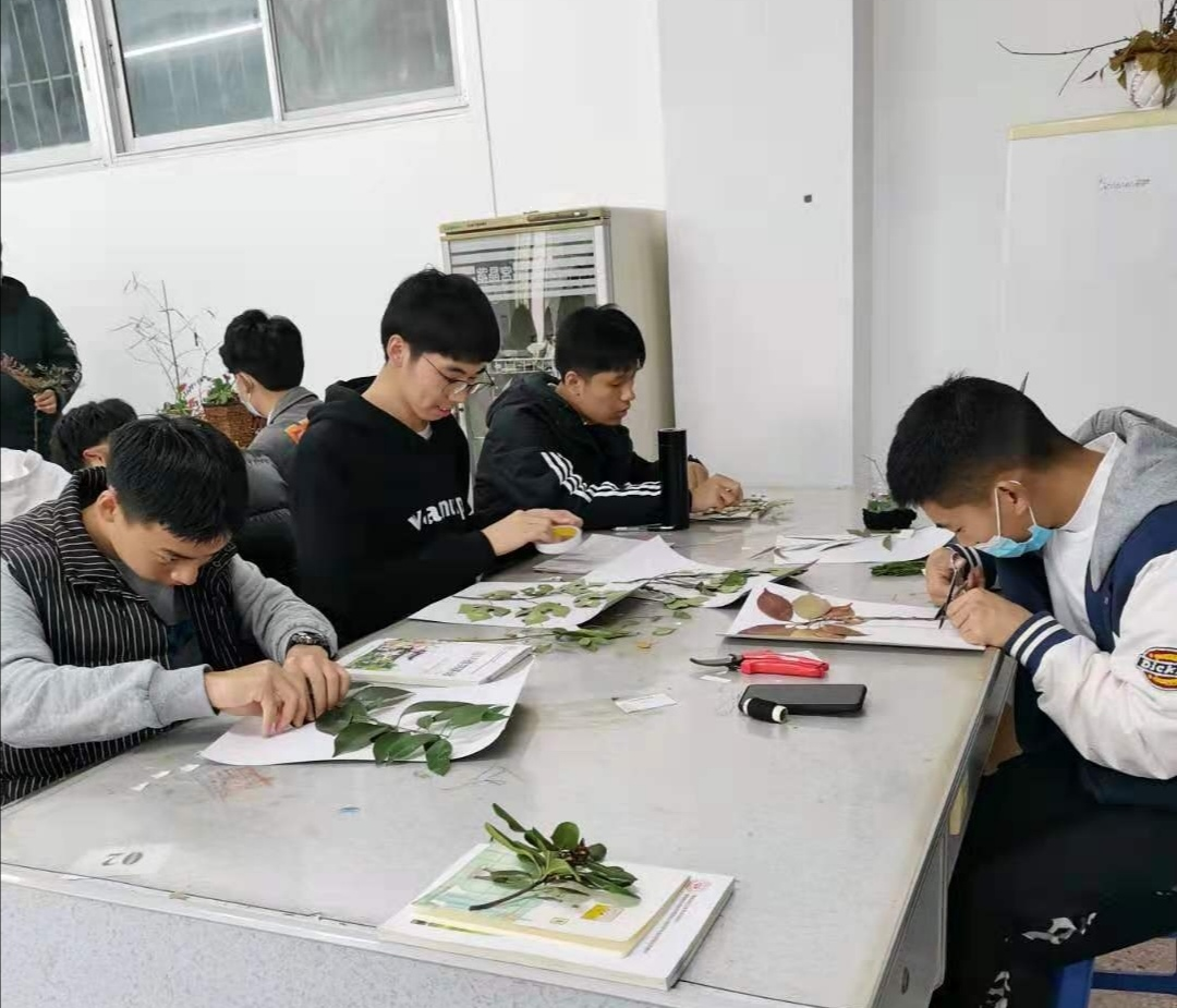 2020年12月16日上午,yl234112020级园林技术(园林景观方向)专业的园林植物课上,同学们在园林专业教师陈苏利的指导下,精心处理自己采摘的植物标本,利用自己学习的园林植物的识别、园林植物的分类等前期学习的基本知识和标本制作技能,开始用心制作浸透着自己审美倾向的植物标本。