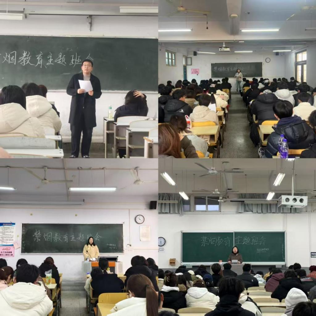 辅导员们讲述了吸烟对个人健康、校园环境及社会的负面影响。通过生动的案例、详实的数据,向同学们展示了吸烟对呼吸系统、心血管系统的严重危害,以及由吸烟引发的火灾隐患。有的班级还通过播放视频、展示海报等形式,直观地呈现了吸烟对健康的长期影响。班会过程中,同学们积极参与讨论,分享了身边因吸烟受到影响的实例,学习了如何劝阻他人吸烟。