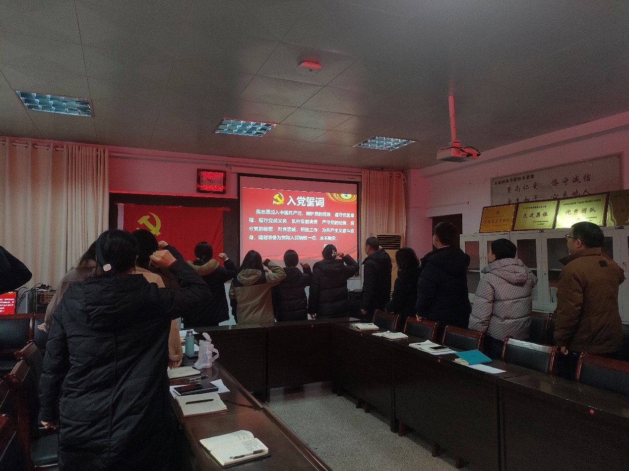 会议进行第四项:支部书记杨智勇带领全体党员列队面向党旗,宣誓、重温入党誓词。全体党员们高举右手庄重宣誓,接受心灵的洗礼。