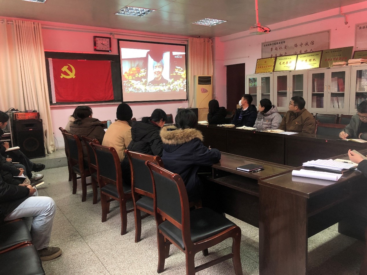 会议进行第七项:全体党员观看视频:《龚全珍——为一代代年轻教育工作者照亮前路》。