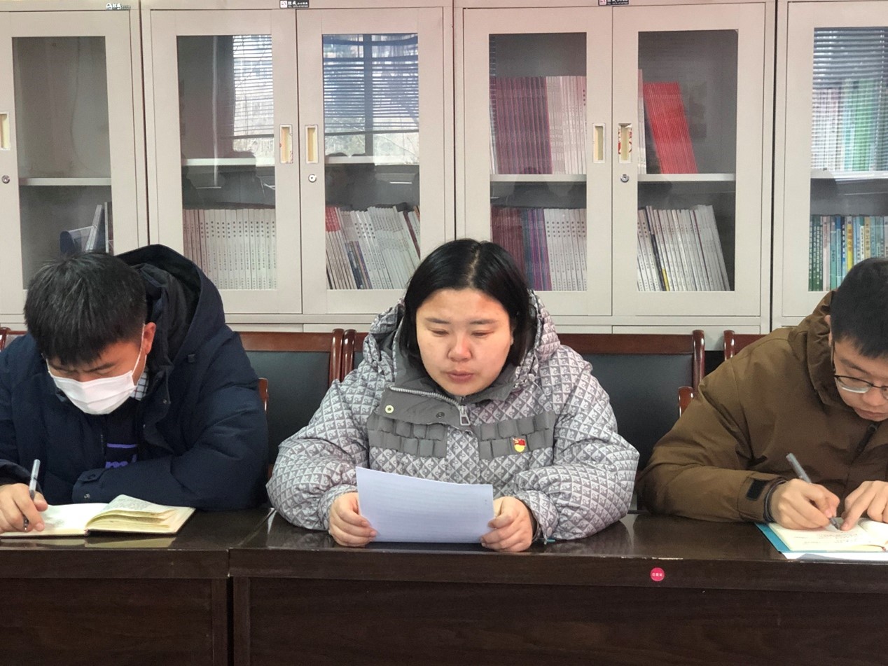 会议进行第二项:由党员任玮同志带领全体党员学习2025年全国教育工作会议精神。