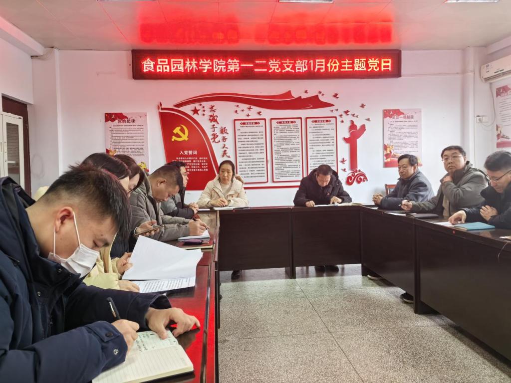 会议进行第一项:由党员罗慧慧同志带领全体党员学习习近平在中共中央政治局民主生活会上的重要讲话。会议进行第二项:由党员石莹莹同志带领全体党员共同学习习近平在二十届中央纪委四次全会上发表重要讲话强调 坚持用改革精神和严的标准管党治党 坚决打好反腐败斗争攻坚战持久战总体战。会议进行第三项:由党员刘若凡同志带领全体党员共同学习习近平对做好“三农”工作作出的重要指示。会议进行第四项:全体党员列队面向党旗,由党员杨智勇同志带领全体党员重温入党誓词。会议进行第五项:交纳党费。支部党员按顺序集中交纳党费给组织委员赵鹏辉、张宁同志。会议进行第六项:杨智勇、陈玉琴反馈样板支部和“双带头人”工作室考核情况,强调下一步工作要点。会议进行第七项:观看视频习近平总书记二〇二五年新年贺词。