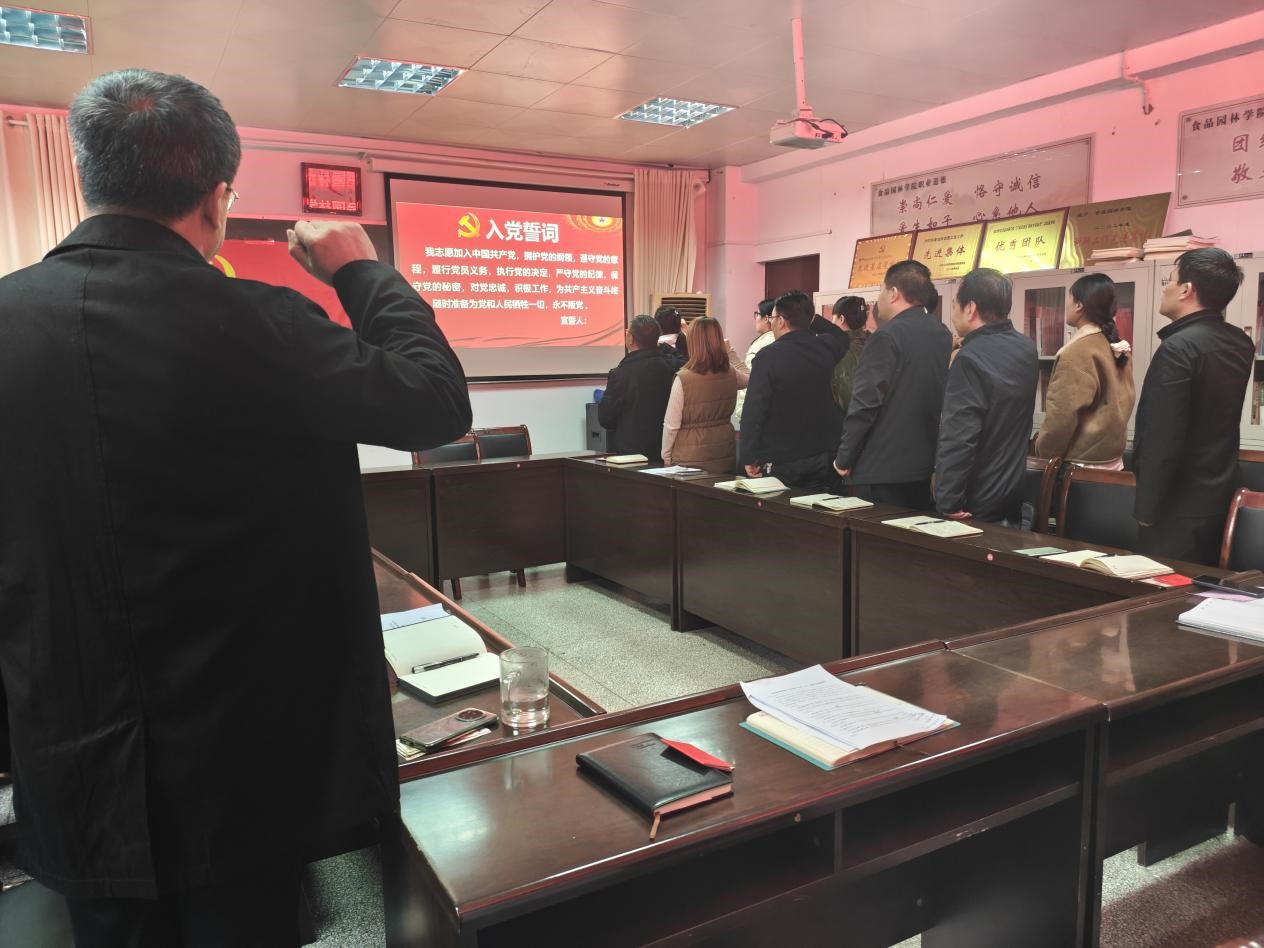 第五项:全体党员列队面向党旗,由第二党支部书记陈玉琴同志带领全体党员重温入党誓词。党员们高举右手庄重宣誓,接受心灵的洗礼。
