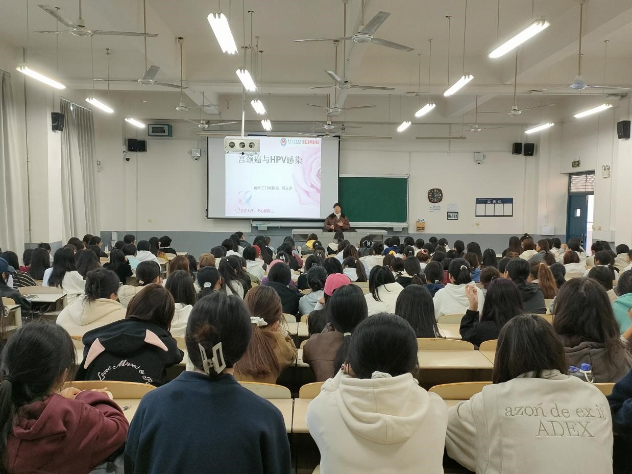 主讲人何医生从专业角度出发,结合自身的工作经验,从生理构造和自我保护两个方面讲解。首先通过文字、图像、具体事例等详细地描述了女生的生理结构,并告诉大家不要过于担心自己的身体变化。其次,又举真实案例,讲述女生们如何保护自身安全与健康,要自重、自爱,要有自我保护的意识,健康成长。最后强调接种HPV疫苗的重要性,并提出HPV疫苗不仅对女性重要,因为它可以预防宫颈癌,保护大家的身体健康。此外,她还提出新时代女性如何做到自尊自爱、自信自强,让女生们更直观地了解了健康防护的知识,大家都认真倾听,积极互动,反响热烈。