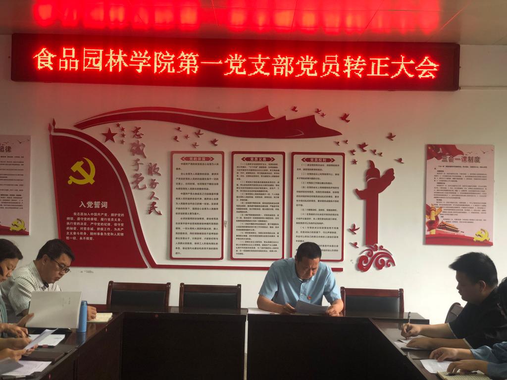 会议第二项:预备期满一年的预备党员李玉荣、沈豪、郑晓林、李苗、孙畅5名预备党员宣读转正申请,汇报自己在预备期间的工作情况和学习成果,并由正式党员对申请人预备期间的思想、工作、生活等方面表现进行总结评价,衡量其是否具备成为正式党员的标准。经全场党员严肃讨论和表决,一致通过了预备党员的转正申请,最终李玉荣、沈豪、郑晓林、李苗、孙畅5名同志全票通过,如期转正,并上报上级党组织批准。