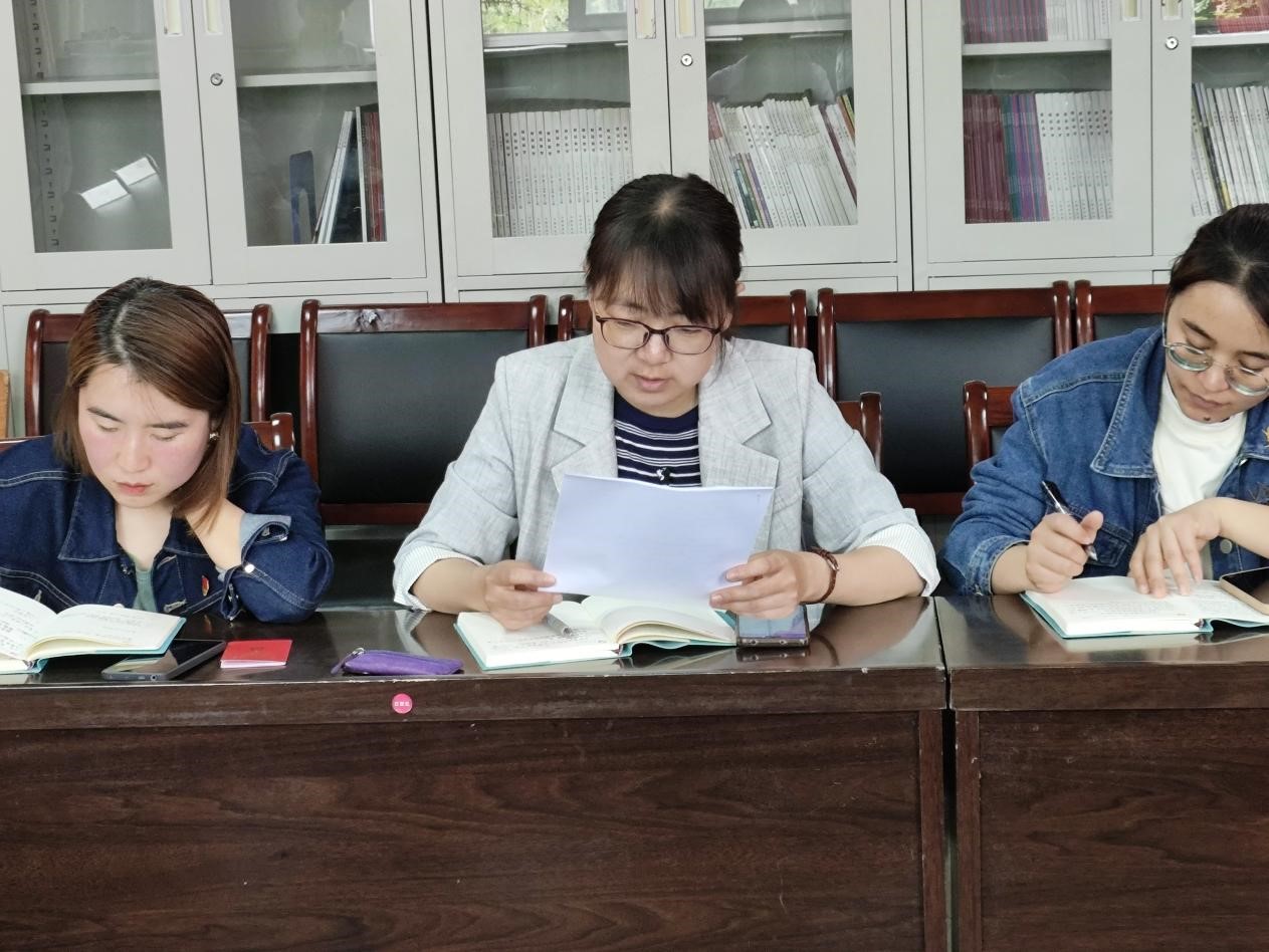 会议进行第二项:由党员卫婕同志带领全体党员学习《准确把握党纪学习教育的目标任务一一扎实开展党纪学习教育》。
