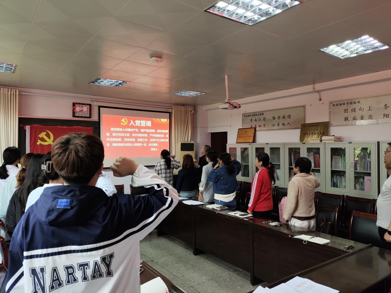 会议进行第五项:全体党员列队面向党旗,由党支部书记杨智勇同志带领全体党员重温入党誓词。