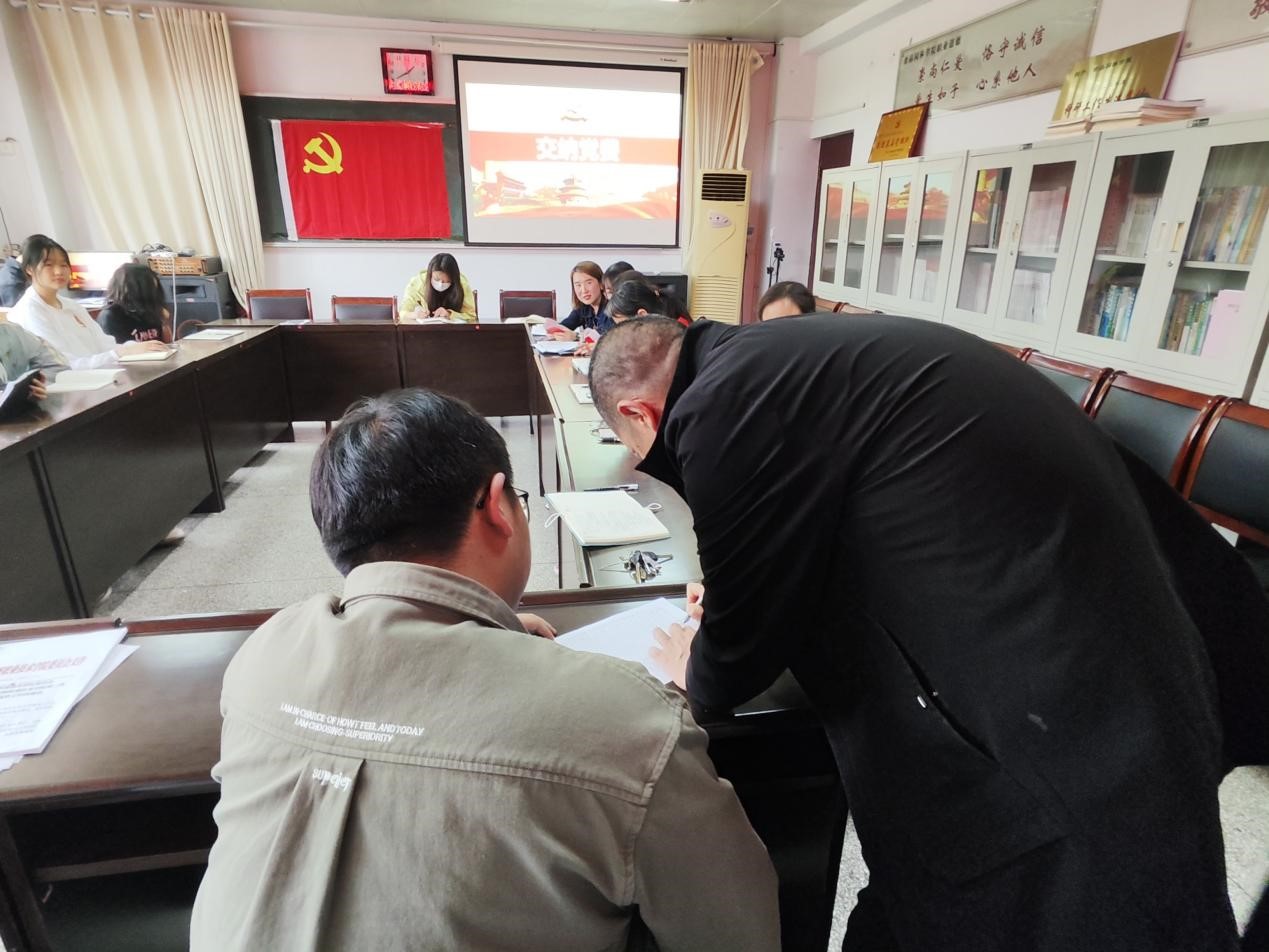 会议进行第六项:交纳党费。各支部党员按顺序集中交纳党费给组织委员赵鹏辉同志。