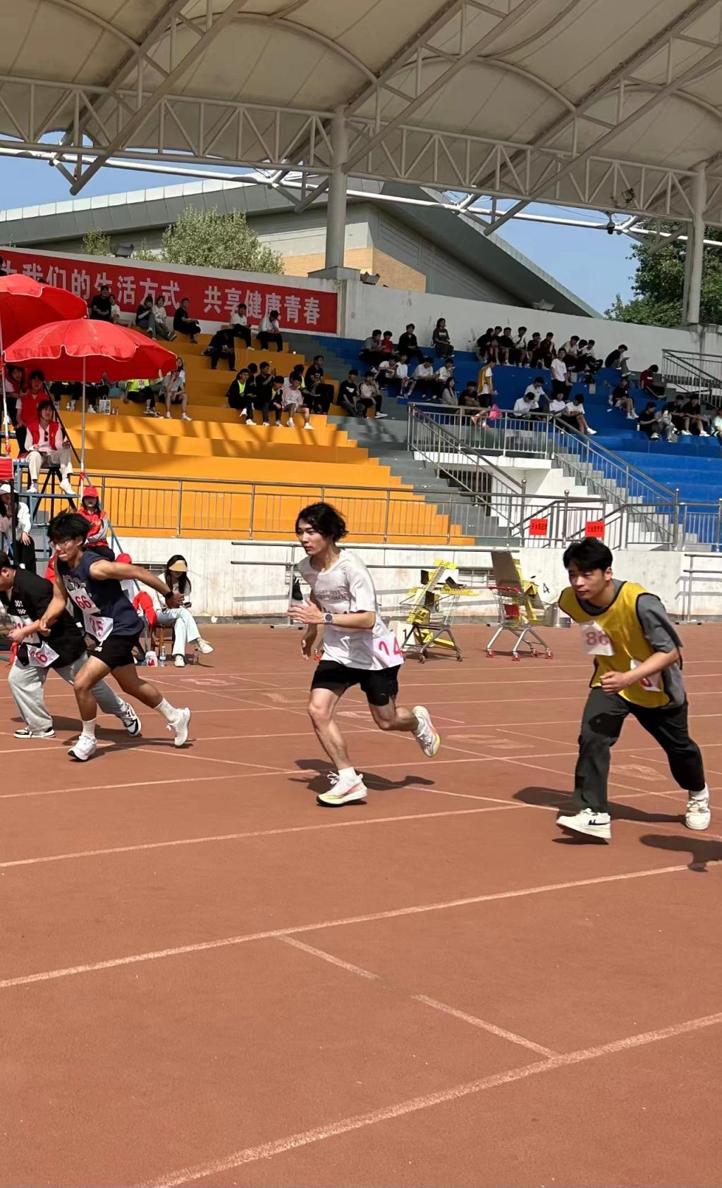 yl23411应用化工六班的王一名同学首先参加了男子200米项目,他如同燃烧的火焰,全身散发着活力和激情,汗水从他的额头、脸颊、脖颈滑落,滴在跑道上,闪烁着晶莹的光芒。经过激烈角逐,最终以第一名的优异成绩荣获佳绩。后又在“男子三级跳远”中全力发挥,每个动作都充满了力量和速度。在运动场上,挥洒汗水不仅是对身体的锻炼,更是对意志的考验。他的出色表现离不开积极向上的精神风貌和全力以赴的坚定信心,更体现了他勇往直前、勇于挑战,突破自我的优良品格。