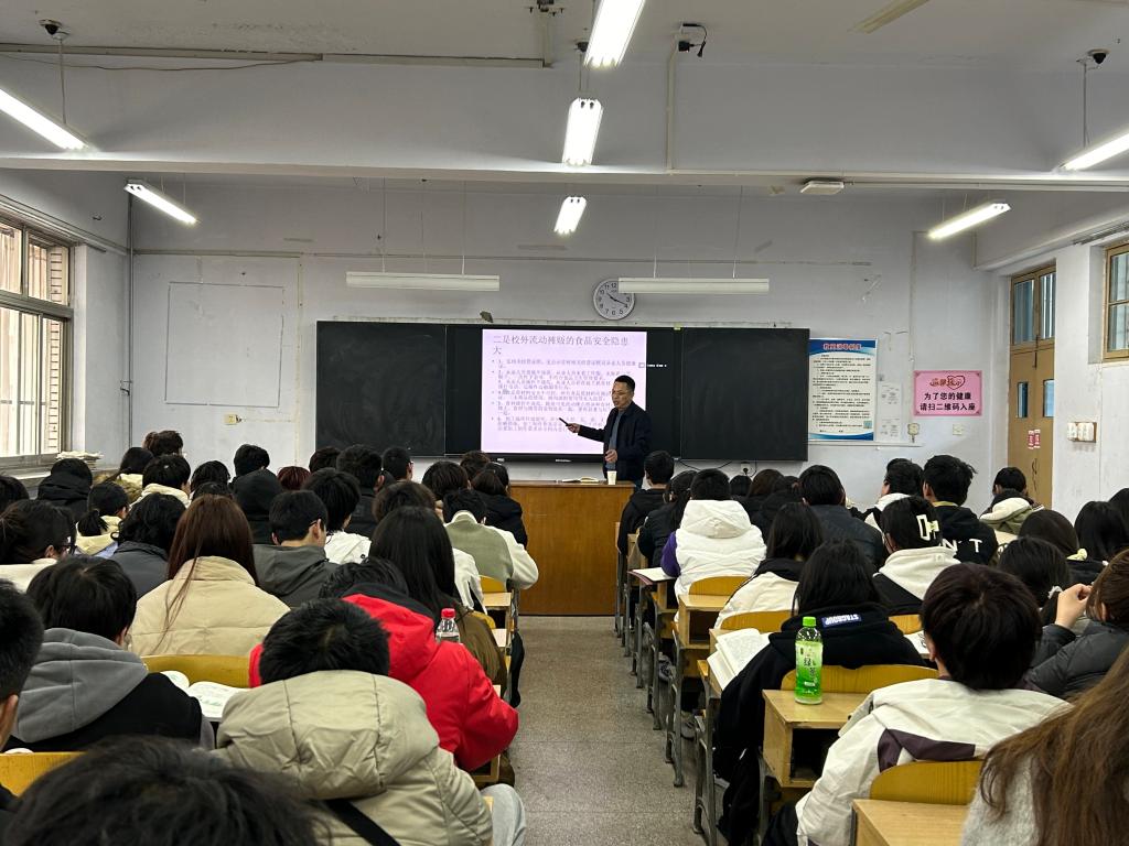 彭博副经理围绕什么是食品安全、什么是食品安全意识、老员工群体的食品安全意识水平怎么样展开了讲解,并结合yl23411校园大量食品安全现状等真实案例进行了详细的剖析。在谈到老员工群体的食品安全意识相对较低时,他提出了主要目前员工存在以下几个方面的问题:一是食品安全知识了解程度不足,二是食品安全意识水平相对较低,三是大量员工选择食品安全状况不良的场所就餐。针对以上问题,提彭博副经理出了以下几点建议:一是提升校内餐厅服务质量,加强校内餐厅管理,进一步提升服务意识,持续了解员工需求,增加饭菜品种,改善就餐环境;二是加强食品安全教育和管理,采取多种形式的活动,提升员工食品安全意识,确保员工拒绝不安全食品的消费;三是希望员工们要提高食品安全意识,除了公司举办的相关活动以外,应主动通过其他途径获取食品安全知识,提升食品安全意识,保护自身身体健康;四是加强校外流动摊点治理,协调相关部门规划合适场所用于流动摊贩的集中固定经营,加强对入驻摊贩食品安全、消防、卫生等方面的管理。