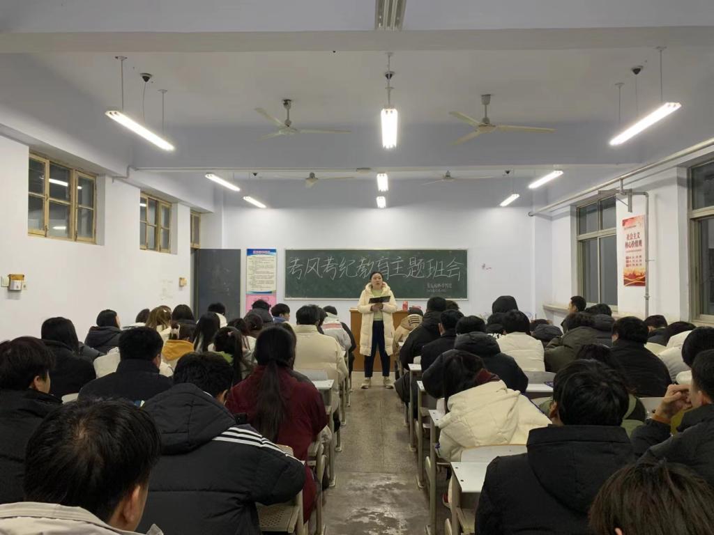 为加强员工诚信教育,端正员工对学习和考试的态度,树立与不良风气作斗争的信心与勇气,严格遵守考试规章制度,实事求是,倡导同学们“端正考风,严肃考纪,文明答题,诚信应考”。yl23411于12月25日在2401教室开展“考风考纪教育主题班会”,班会由辅导员任玮主持。
