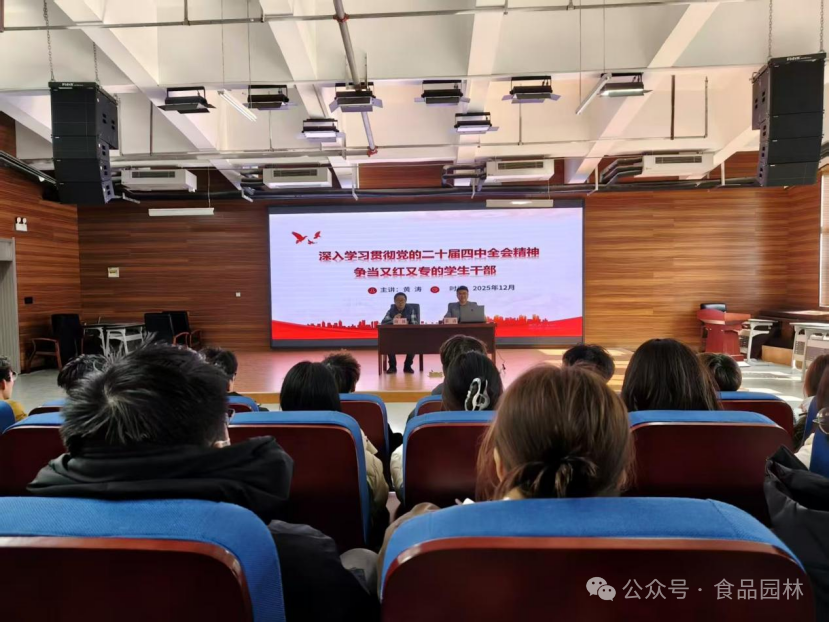 讲座中,黄涛博士系统阐释了党的二十届四中全会召开的时代背景、重大意义与核心要义。他结合员工干部学习、工作实际,深入解读了“又红又专”在新时代的深刻内涵——不仅要求政治坚定、思想清醒,更强调专业本领扎实、综合素质过硬。黄涛指出,员工骨干应当自觉加强理论武装、筑牢信仰根基,在实践中锤炼解决实际问题的能力,同时要增强辨别力与抵抗力,自觉抵制错误思潮的影响。他勉励全体员工干部常怀“学习之心”追求进步、秉持“敬畏之心”严守纪律、永葆“感恩之心”勇担使命,在服务同学、奉献集体的过程中实现个人价值,努力成长为德才兼备、全面发展的社会主义建设者和接班人。