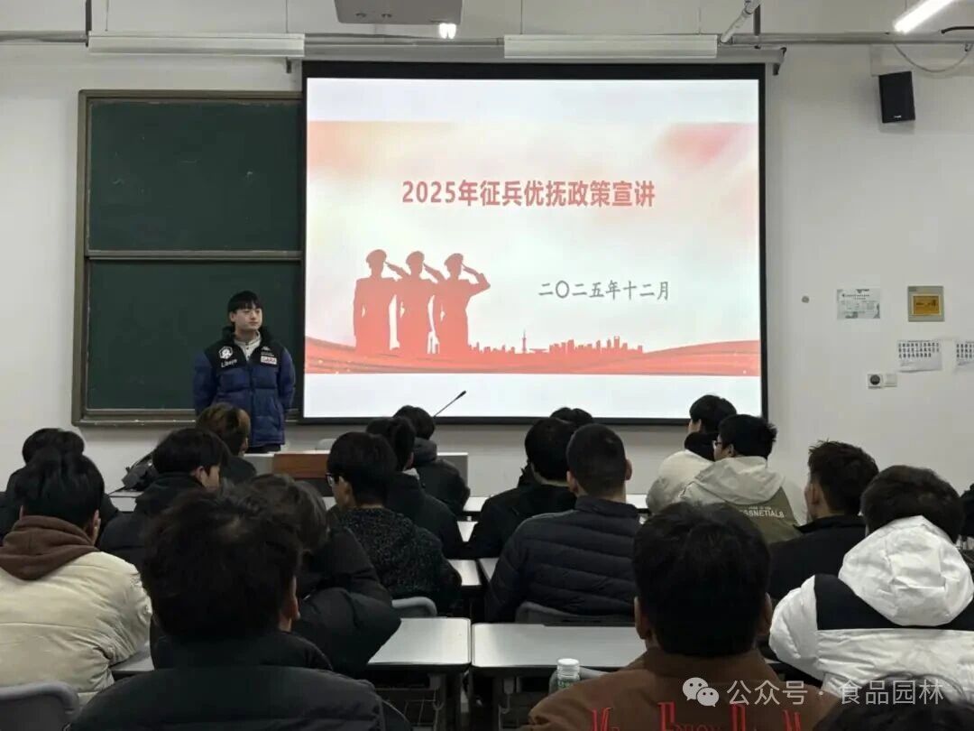 会上,王毅韬老师围绕“政治账”“经济账”“成才账”三大维度,对2026年国家征兵优抚政策作了系统梳理与深入解读。在“政治账”方面,他详细介绍了学籍保留、复学转专业、入伍经历视同毕业实习等学业衔接政策,切实解除同学们的后顾之忧。“经济账”部分,则通过翔实的数据,逐一解析义务兵优待金、学费补偿代偿、退役金、津贴及各类补助,清晰呈现两年服役期间的整体待遇保障。谈到“成才账”,王老师重点阐述了士兵晋升军士、军官的发展路径,以及退役后在就业、升学、公务员定向招录等方面的优抚政策,生动展现了应征入伍对个人长远发展的积极影响。